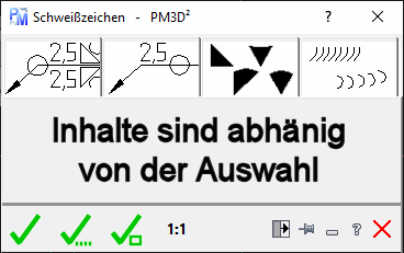 Fügt das gewählte Schweißzeichen / Symbol mehrfach ein bis mit ESC abgebrochen wird.