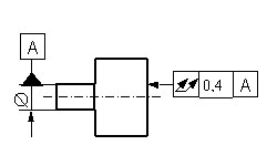 Die tolerierte Achse muss in einem Zylinder von d = 0,04 mm liegen, der parallel zur Bezugsachse A ist.