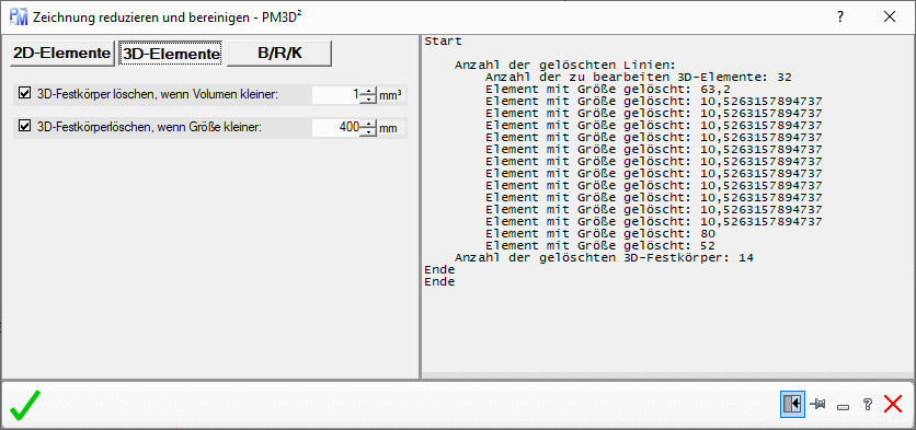 Wird diese Option gewählt, werden alle 3D-Volumenkörper gelöscht eren Kanten länge den angegeben Wert nicht übersteigt.