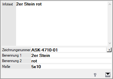 • Zeichnungsnummer: Geben Sie die Zeichnungsnummer ein. Klicken Sie auf “!” und ist sie in der Kundenreferenliste enthalten werden die Daten in die entsprechende Felder eingetragen.