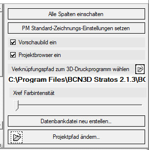 • Xref Farbintensität: Stellt die Farbintensität der Bauteile ein. Der aktuelle Wert wird ermittelt, wenn BricsCAD gestartet ist und man mit der Mauszeiger sich über dem Schieber fährt.