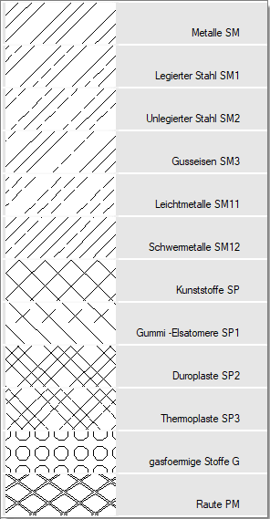 Schraffuren ähnlich nach DIN ISO 128-50 und zusätzliche sonder Schraffuren.