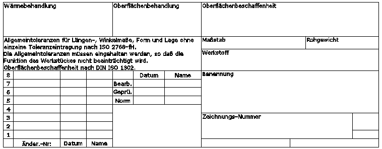 Die Schriftfelder SCHR_F_.DWG, SCHR_G_.DWG, SCHR_M_.DWG und SCHR_SG.DWG, unterscheidet sich nur vom Inhalt des Textes “Allgemeintoleranzen für Längen...”. Geben Sie für neue Schriftfelder einen neuen Namen. Der Zeichnungsnamen muss immer mit “SCHR_” anfangen