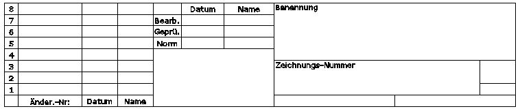 Das Schriftfelder SCHR_PN.DWG unterscheidet sich von dem obigen Schriftfeld, dass der obere Teil des Schriftfeldes fehlt. Dieses Schriftfeld können Sie zum Beispiel für Pneumatik, oder Elektropläne benutzen.