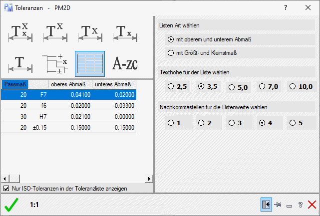 • Zeile: Zeigt die Toleranzen die in der aktuellen Zeichnung sind.